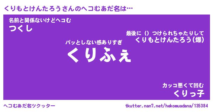 | 男性向けラノベタイトル風あだ名 | 『くりもとけんたろうの憂鬱』 |