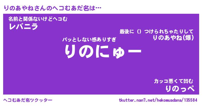 | ファンタジー風あだ名 | 『リノフェル』『エターナルリノアヤネー』 |
