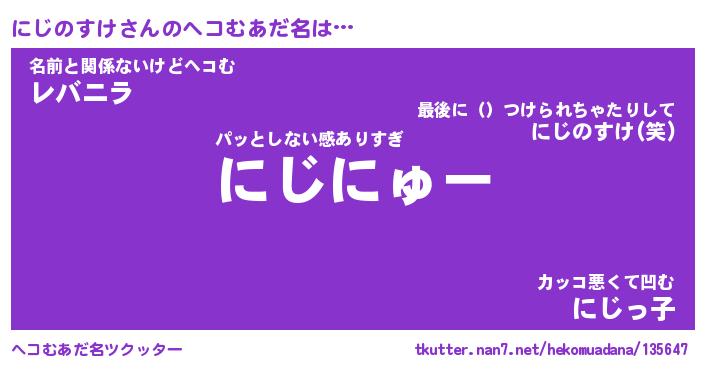 | 2回繰り返すあだ名 | 『にじにじ』『ににじじ』『ぬれぬれ』 |