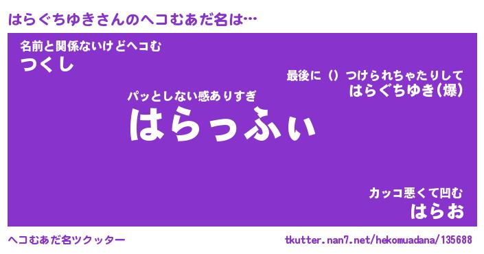 | ポケモン風あだ名 | 『ハラチュウ』『ハラグダネ』 |