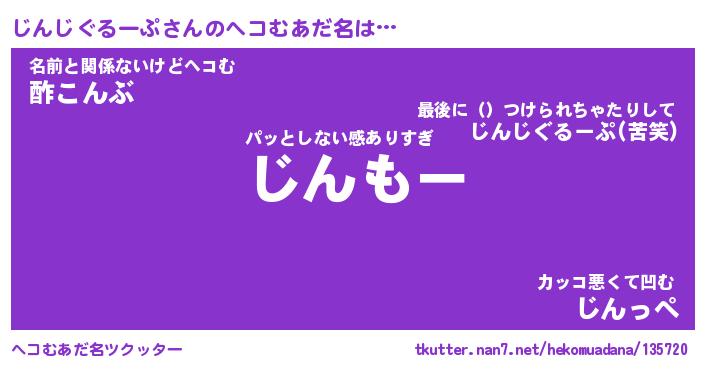 | 男性向けラノベタイトル風あだ名 | 『じんじぐるーぷの憂鬱』 |