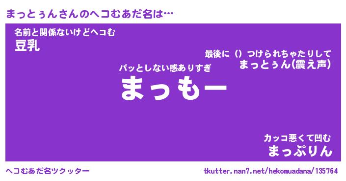 | 男性向けラノベタイトル風あだ名 | 『まっとぅんの憂鬱』 |