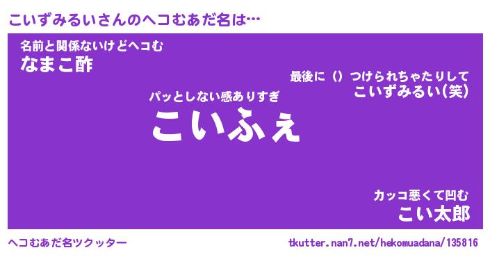 | 胡散臭い通販商品みたいなあだ名 | 『億万長者になれるブレスレット…その名も「こいずみるい」』 |