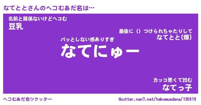 | ポケモン風あだ名 | 『ナテチュウ』『ナテトダネ』 |