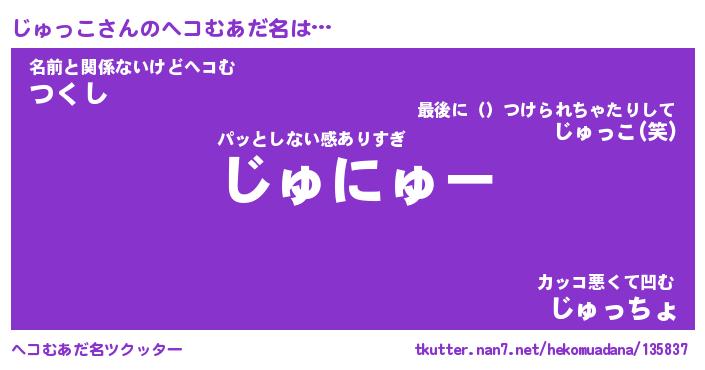 | 意味不明あだ名 | 『ペロリンじゅっこ』『永久保存じゅっこ』 |