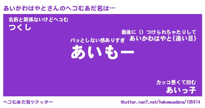 | 恥ずかしいあだ名 | 『プリティーあいかわはやと』『あいちん』 |