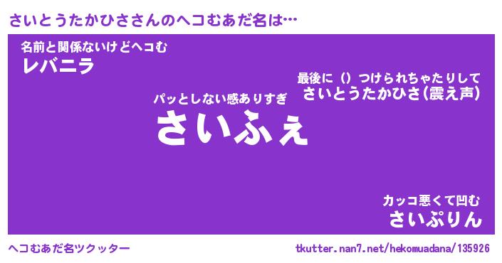 | 肩書あだ名 | 『さいとうたかひさCEO』 |