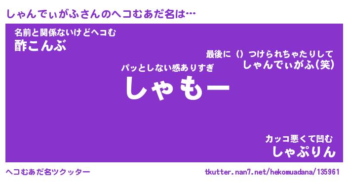 | 意味不明あだ名 | 『ペロリンしゃんでぃがふ』 |