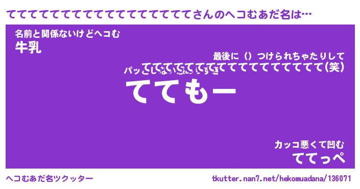 | 男性向けラノベタイトル風あだ名 | 『ててててててててててててててててての憂鬱』 |