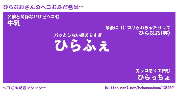 | ファンタジー風あだ名 | 『ヒラフェル』『エターナルヒラナオー』 |