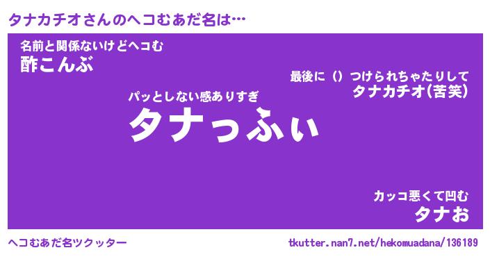 | 2回繰り返すあだ名 | 『タナタナ』『タタナナ』『なあなあ』 |