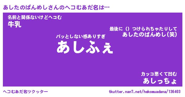 | ツイッター | あしたのばんめしさんのツイッターID『konnyaku_star』 |