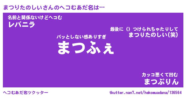 | 男性向けラノベタイトル風あだ名 | 『まつりたのしいの憂鬱』 |