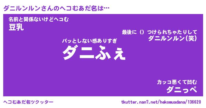 | 男性向けラノベタイトル風あだ名 | 『ダニルンルンの憂鬱』 |