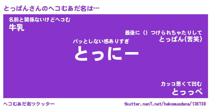 | 意味不明あだ名 | 『ペロリンとっぱん』『永久保存とっぱん』 |