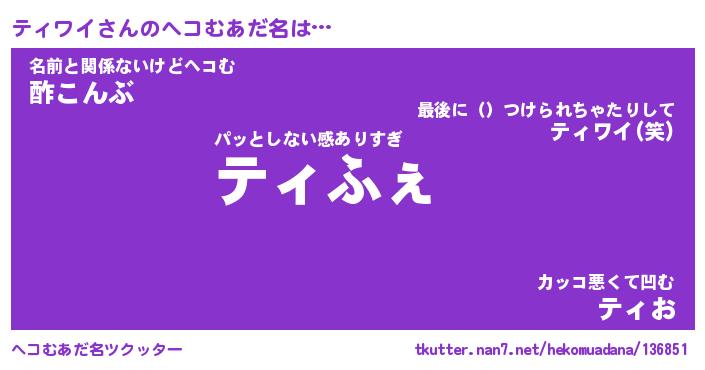 | ポケモン風あだ名 | 『ティチュウ』『ティワダネ』 |