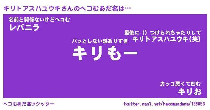 | 男性向けラノベタイトル風あだ名 | 『キリトアスハユウキの憂鬱』 |
