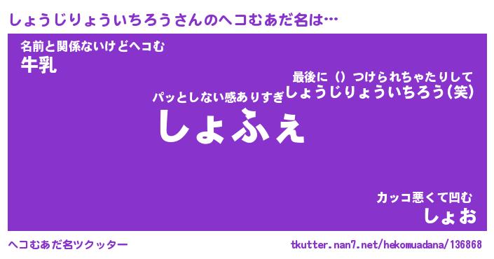 | 女子向けラノベタイトル風あだ名 | 『(仮)しょうじりょういちろうのやんごとなき事情』 |