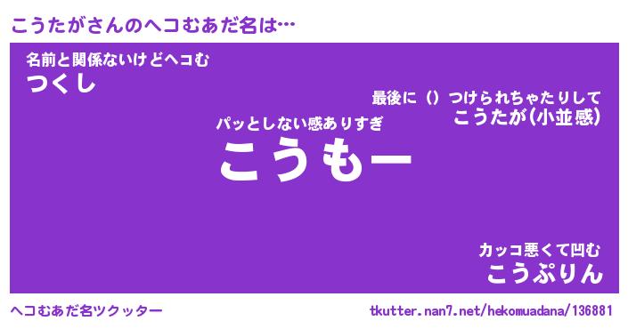 | 意味不明あだ名 | 『ペロリンこうたが』『永久保存こうたが』 |