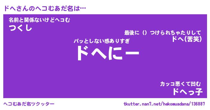 | ポケモン風あだ名 | 『ドヘチュウ』『ドヘダネ』『ヒドヘ』 |