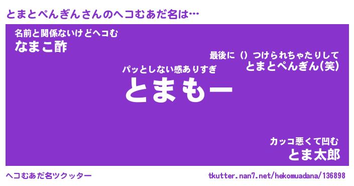 | 2回繰り返すあだ名 | 『とまとま』『ととまま』『ぬらぬら』 |