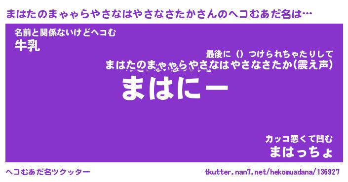 | 欧米人風あだ名 | 『マイケルまはたのまゃゃらやさなはやさなさたか』 |