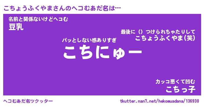 | 男性向けラノベタイトル風あだ名 | 『コチョウフクヤマアートオンライン』 |