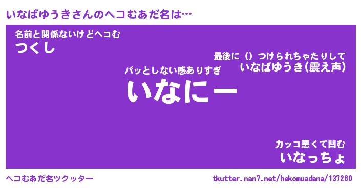 | 恥ずかしいあだ名 | 『プリティーいなばゆうき』『いなっちょ』 |