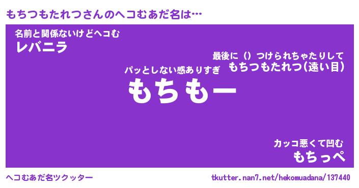 | ファンタジー風あだ名 | 『モチフェル』『ファントムモチス』 |