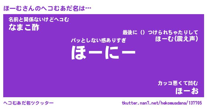 | ポケモン風あだ名 | 『ホーチュウ』『ホームダネ』 |