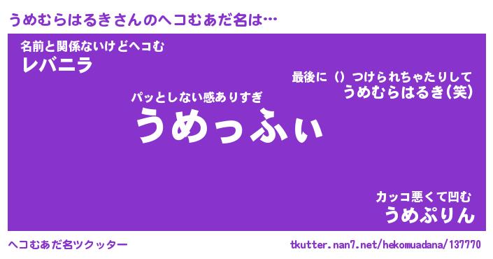 | ポケモン風あだ名 | 『ウメチュウ』『ウメムダネ』 |
