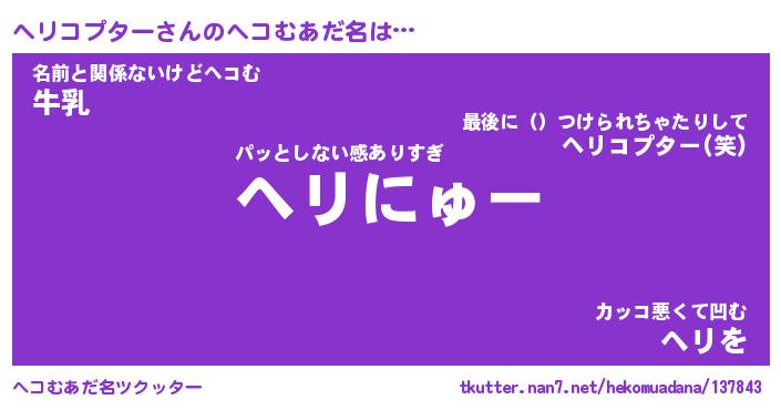 | 自動車の名前っぽいあだ名 | 『ヘリティマ』『ヘクア』『ヘント』 |