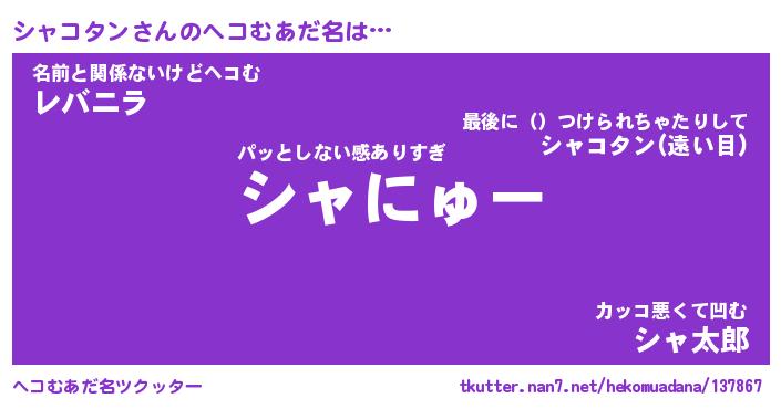 | ヒーロー風カッコイイあだ名 | 『スーパーシャコタン』『炎刃騎士シャ』 |