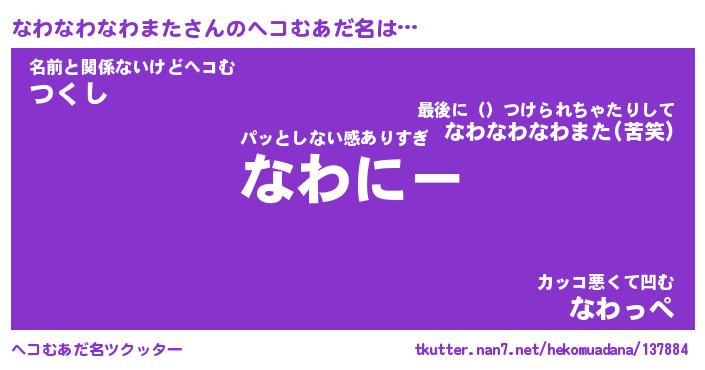 | 2回繰り返すあだ名 | 『なわなわ』『ななわわ』『あんあん』 |