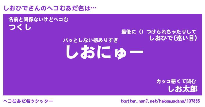 | 男性向けラノベタイトル風あだ名 | 『しおひでの憂鬱』 |
