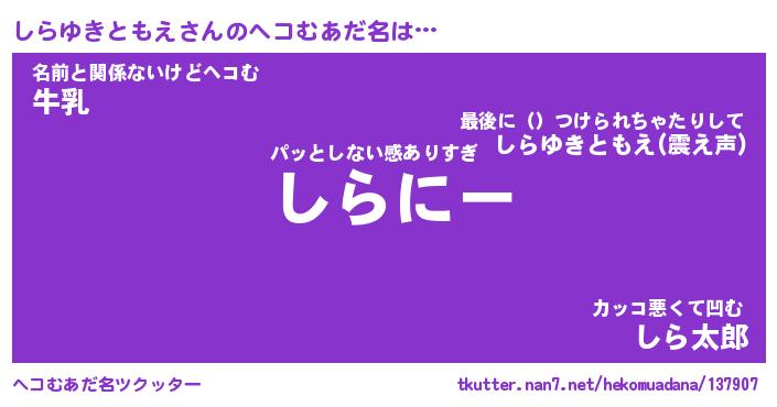 | ヒーロー風カッコイイあだ名 | 『スーパーシラユキトモエ』 |