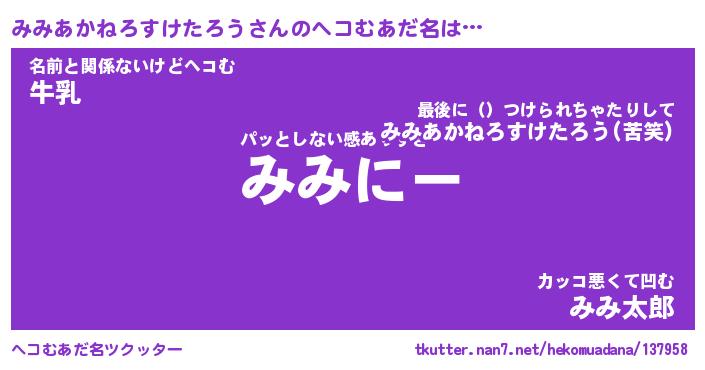| 意味不明あだ名 | 『ペロリンみみあかねろすけたろう』 |