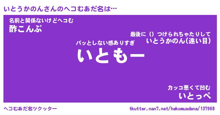 | 男性向けラノベタイトル風あだ名 | 『イトウカノンアートオンライン』 |