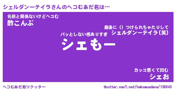 | ヒーロー風カッコイイあだ名 | 『スーパーシェルダンーテイラ』 |