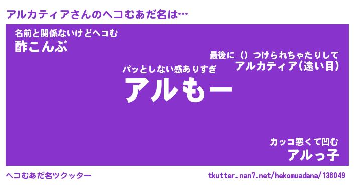 | ヒーロー風カッコイイあだ名 | 『スーパーアルカティア』『炎刃騎士アル』 |