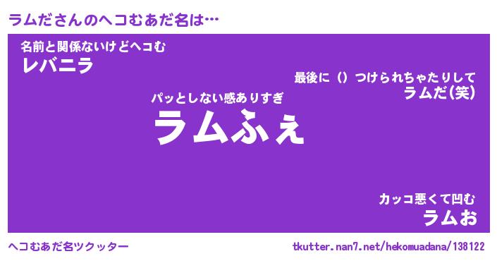 | ポケモン風あだ名 | 『ラムチュウ』『ラムダダネ』 |