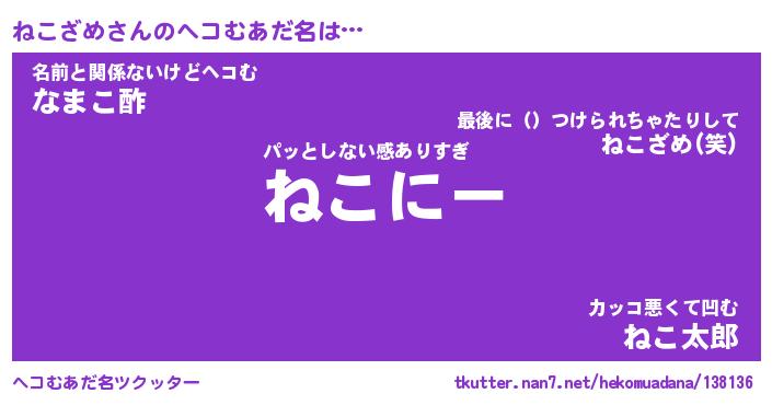 | ファンタジー風あだ名 | 『ネコフェル』『エターナルネコザメー』 |