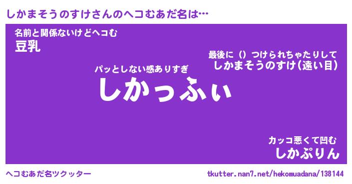 | 2回繰り返すあだ名 | 『しかしか』『ししかか』『こんこん』 |