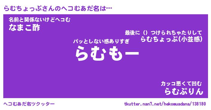 | 2回繰り返すあだ名 | 『らむらむ』『ららむむ』『げらげら』 |
