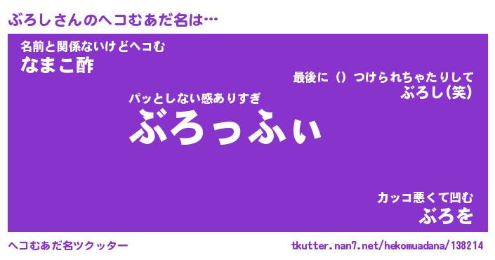| 男性向けラノベタイトル風あだ名 | 『ぶろしの憂鬱』 |