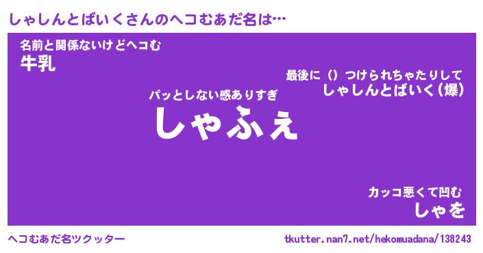 | 2回繰り返すあだ名 | 『しゃしゃ』『ししゃゃ』『うねうね』 |