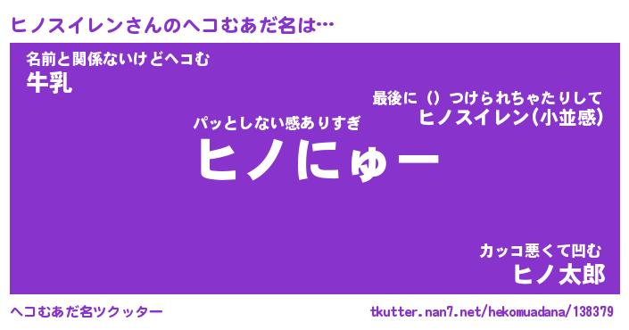 | 2回繰り返すあだ名 | 『ヒノヒノ』『ヒヒノノ』『ぶるぶる』 |