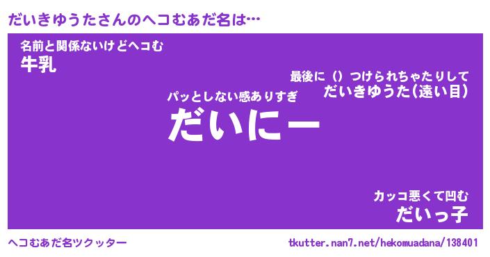 | ヒーロー風カッコイイあだ名 | 『スーパーダイキユウタ』『魔戒騎士ダイ』 |