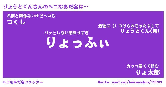 | 2回繰り返すあだ名 | 『りょりょ』『りりょょ』 |
