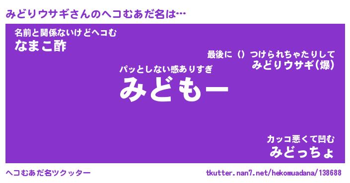 | ヒーロー風カッコイイあだ名 | 『スーパーミドリウサギ』『魔戒騎士ミド』 |